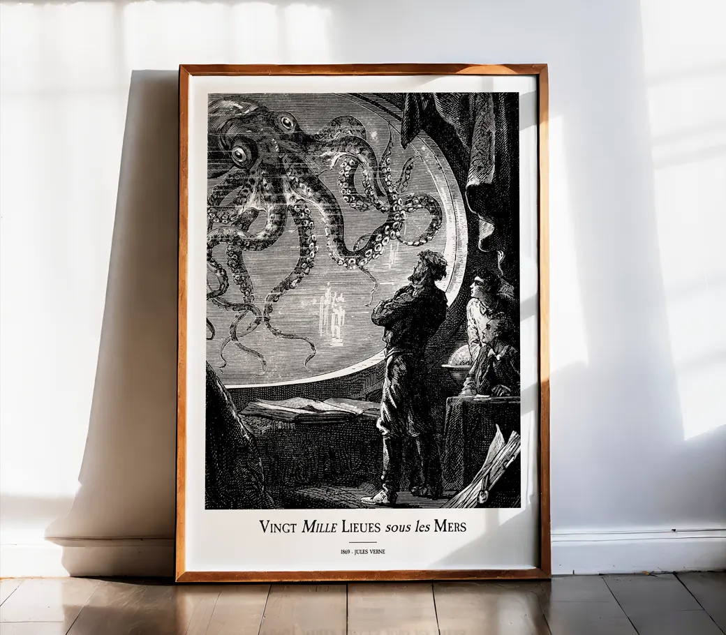 ✨ Une affiche spectaculaire et intemporelle, parfaite pour une décoration littéraire, maritime ou rétro-futuriste.