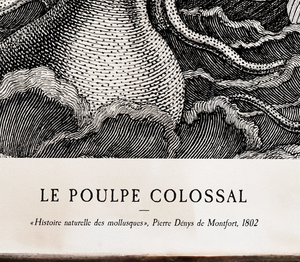 🌊 Gravure historique extraite de L’Histoire naturelle des mollusques (1802) de Pierre Dénys de Montfort, naturaliste visionnaire et pionnier des légendes marines.
