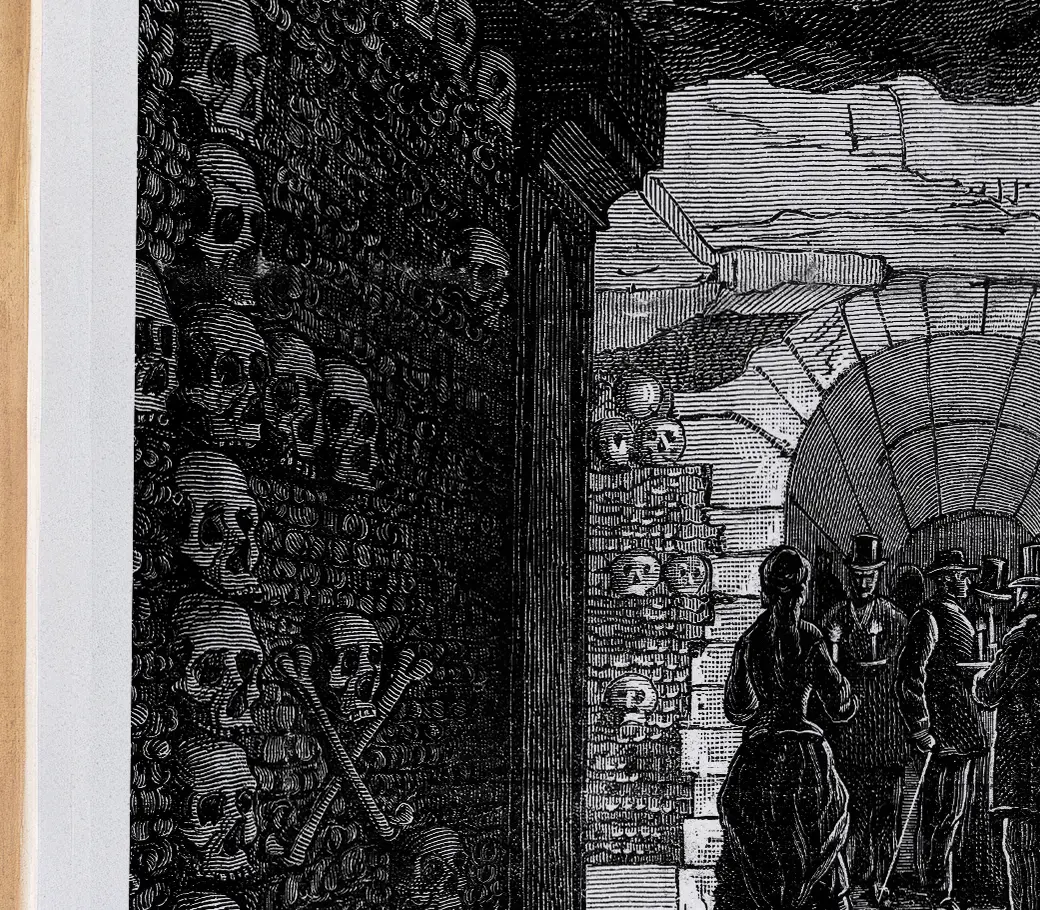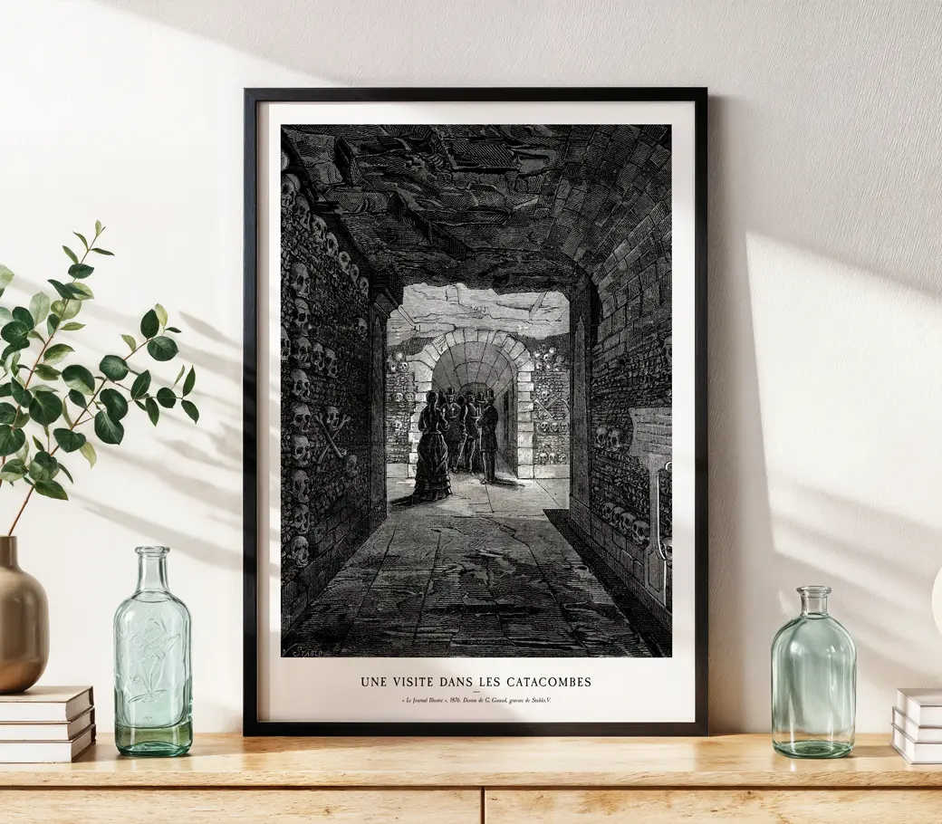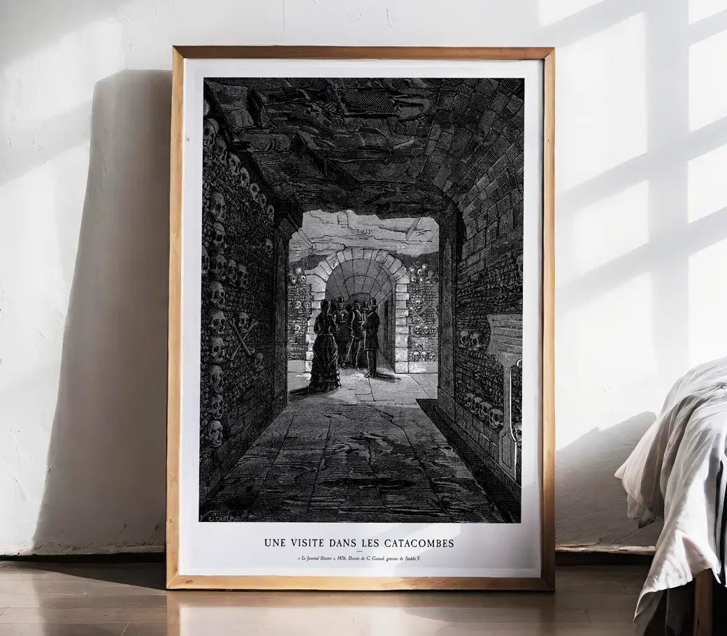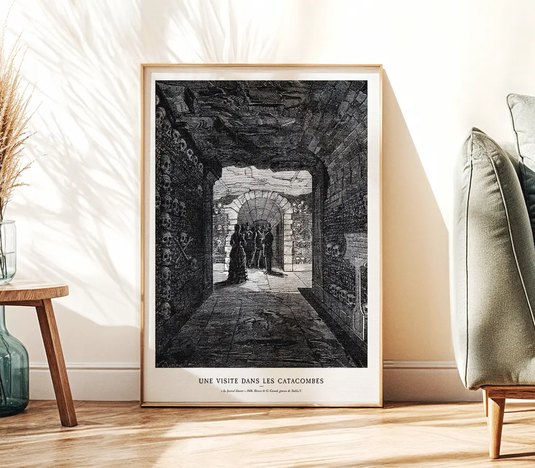 Entre curiosité scientifique, frisson gothique et réalisme journalistique, la gravure traduit la fascination du XIXᵉ siècle pour les lieux où l’histoire et la mort se mêlent.